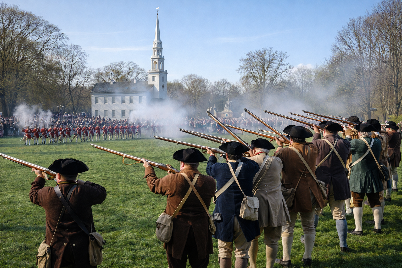 This reenactment commemorates the opening battle of the American Revolution.